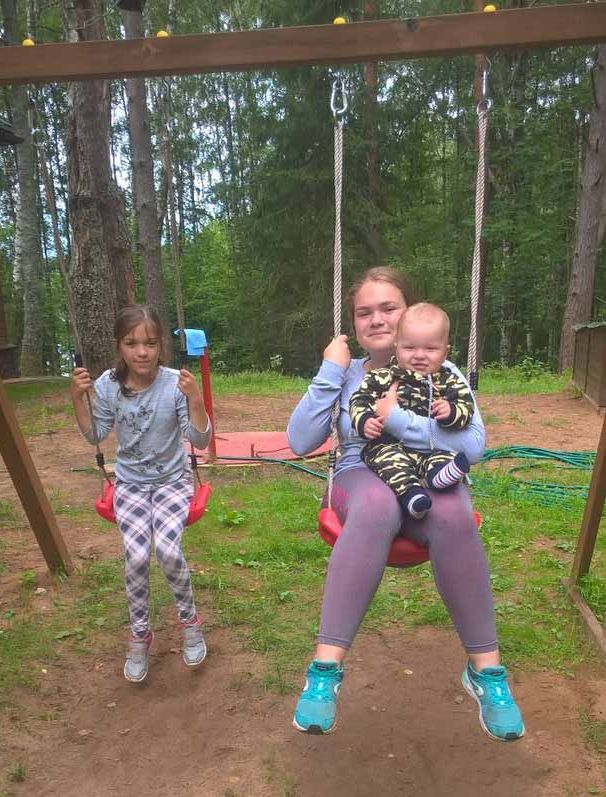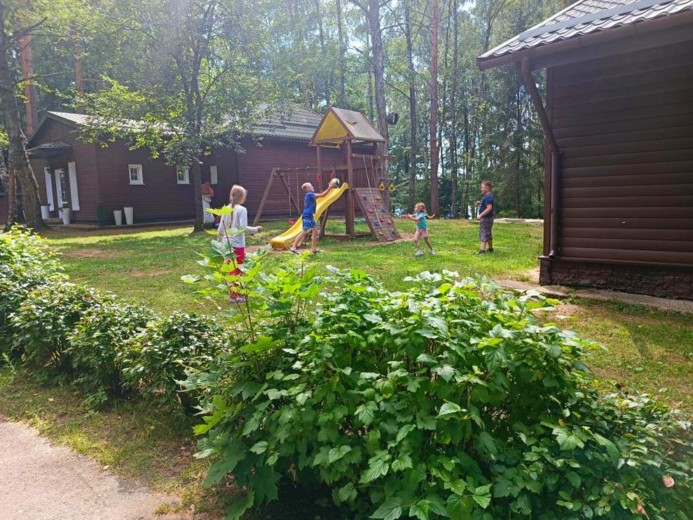 Отдых для семьи с детьми порадует обустроенной игровой площадкой с качелями и горкой,